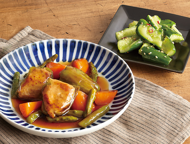 ピーマンの肉詰め甘酢たれ仕立て