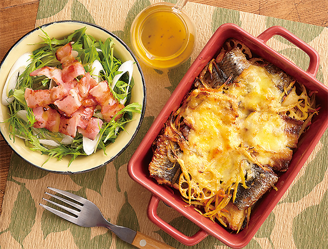 いわしと根菜のカレーチーズ焼き