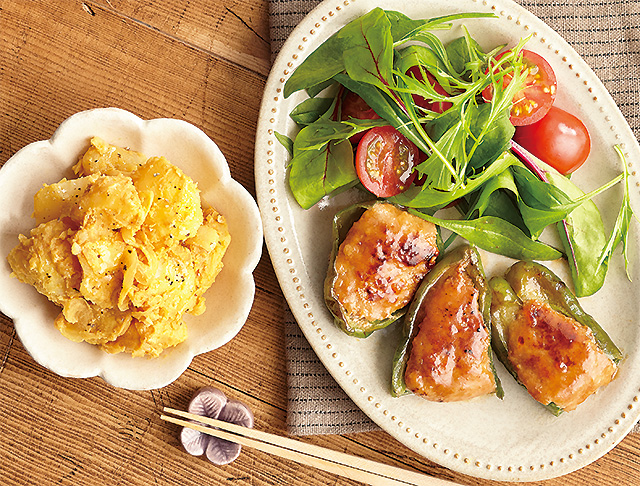 照り焼きソースのピーマンの肉詰め