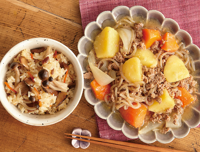 ひき肉で肉じゃがみそ仕立て