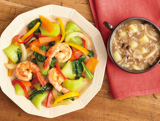 シャキシャキチンゲン菜とえびの中華炒め