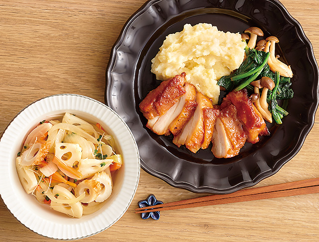 チキンステーキとクリーミーマッシュポテト