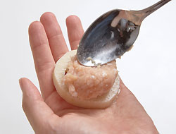 スプーンでれんこんの穴にぎゅっと押し込んでいくと、うまくはさめます。