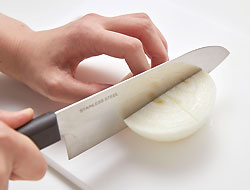 たまねぎは火の通りをよくするために切り込みを入れます。