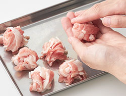 豚肉は強く固めず、ふんわり握る感じで丸めてください。
