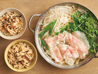 にんにく香る豚肉しゃぶしゃぶ、ひじきの炊き込みごはん