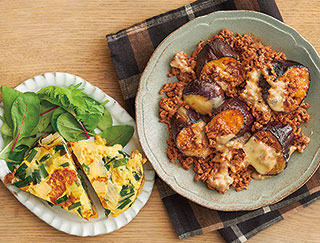 なすミンチととろ~りチーズ、にらとオニオンの香りオムレツ