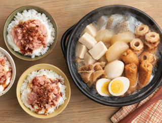 お手軽おでん、こがしにんにくがけまぐろ丼