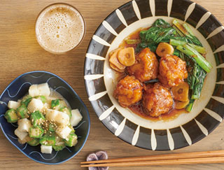 ふんわり角煮風、オクラと長いもの明太和え