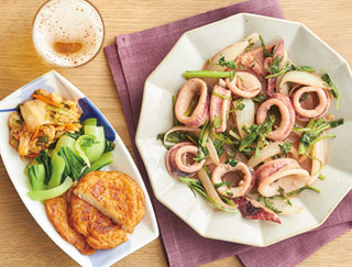 つくりおきいかと菊菜のマヨポン炒め、おつまみセット
