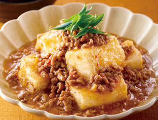 材料:木綿豆腐、豚ミンチ、白ねぎ、サラダ油、片栗粉