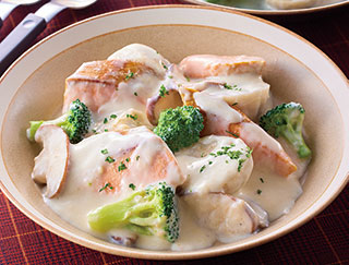 材料:秋鮭の便利カット、里芋、生しいたけ、ブロッコリー、バター、小麦粉、白みそ、塩・こしょう、パセリみじん切(あれば)