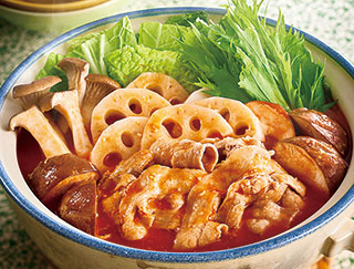 材料:豚バラうす切・白菜、水菜・れんこん、エリンギ、生しいたけ