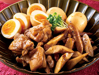 材料:鶏モモ切身、ゆで卵、ごぼう、油