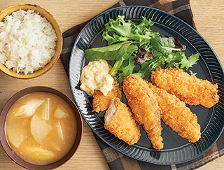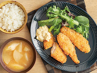 秋鮭のフライ、大根のみそ汁