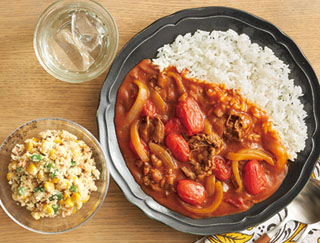 おまかせ献立(2人分)トマトがジューシーなハヤシライス、オリーブオイルでしっとりうの花コーン