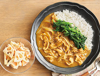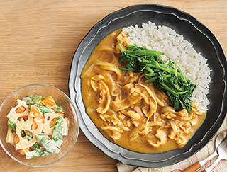 材料:豚こま切、たまねぎ、ほうれん草、ご飯、サラダ油
