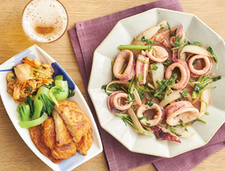 つくりおきいかと菊菜のマヨポン炒め、おつまみセット
