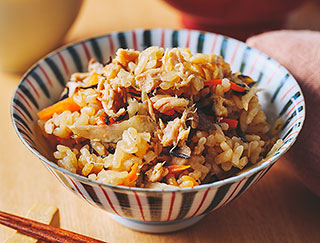 野菜をたくさん使った、炊き込みご飯と汁ものの献立