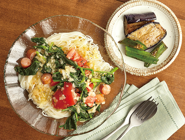 夏野菜の甘辛煮、フライパンでカリッと!海鮮ミニチヂミ