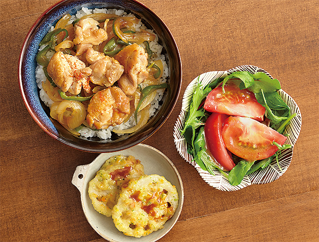 和えトマトサラダ、レンコンひき肉はさみ揚げ
