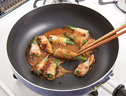 肉巻きはAを入れて、絡めながら焼き上げて。