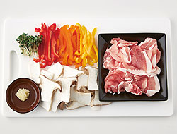 (1)ピーマンは千切りにし、エリンギは長さ半分のうす切りにする。にんにくはすりおろす。(2)ボウルにAを混ぜ合わせ、解凍した豚肉、(1)を入れてしっかりもみこみ、5分置く。