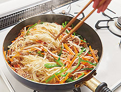 そうめんは具材をからめる程度で炒めて