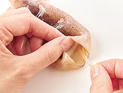 いかの胴の内側にある固い部分(中骨)を抜きとります。