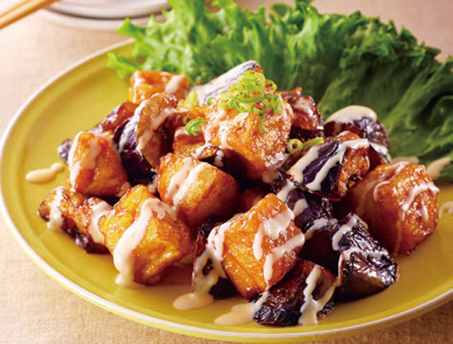 (1)厚揚げは手でひと口大にちぎる。なすは乱切りにする。ポリ袋に入れ、全体に片栗粉をまぶす。(2)フライパンに油を熱し、(1)を入れて全面をカリッと焼いて取り出す。(3)フライパンをきれいにし、(2)、Aを入れて煮絡める。(4)器に盛り、混ぜ合わせたBをかけ、一味唐辛子、青ねぎを散らす。※材料はコープきんきで取り扱いの商品を使っています