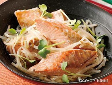 (1)鮭は冷凍であれば半解凍し、3等分に切る。かいわれ大根は根元を切る。(2)耐熱容器にもやしと鮭を入れ、Aをかける。ラップをふんわりとかけ、電子レンジ(500w)で約4分加熱する。(3)器に盛り、かいわれ大根を散らす。