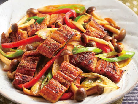 (1)うなぎは半解凍してひと口大に切る。赤ピーマンは細切り、白ねぎは斜め切り、しめじはほぐす。(2)フライパンに油を熱し、白ねぎ、しめじ、赤ピーマン、うなぎを順に加えて炒める。蒲焼のたれを加えてからめ、山椒をふってサッと炒める。※材料はコープきんきで取り扱いの商品を使っています