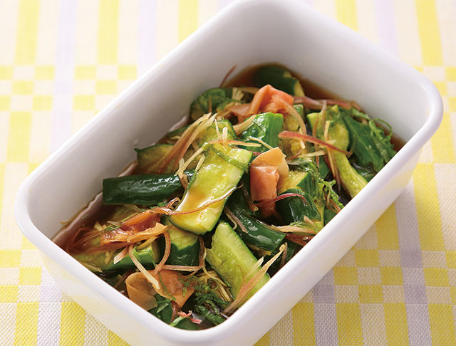 (1)きゅうりはめん棒でたたいて割り、食べやすく切る。大葉、みょうが、しょうがはせん切りにする。(2)(1)とAを混ぜ合わせ、冷蔵庫で冷やす。※調理時間に冷蔵庫で冷やす時間は含みません