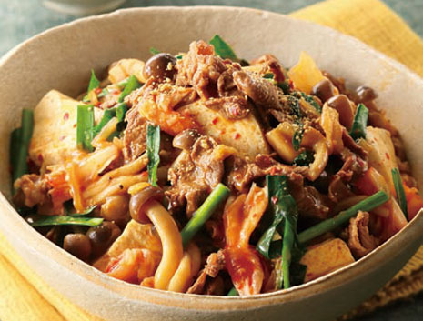 (1)牛肉、豆腐は食べやすく切り、しめじは小房に分け、にらは4㎝長さに切る。(2)鍋にA、キムチを入れて煮立て、牛肉、豆腐、しめじを加えて蓋をし、中火で約5分煮る。にらを加えてサッと煮、器に盛って白ごまをふる。※材料はコープきんきで取り扱いの商品を使っています