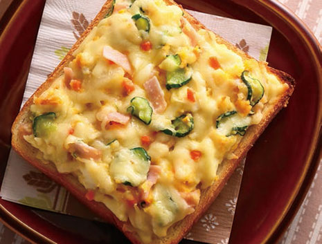(1)ハムは短冊切り、きゅうりは輪切りにして塩もみをし、水気をしぼる。(2)ボウルにポテトサラダ、(1)、ゆで卵を入れて卵をつぶしながら混ぜ合わせる。(3)食パンに(2)をのせてチーズを散らし、トースターで焼き色がつくまで焼く。※材料はコープきんきで取り扱いの商品を使っています