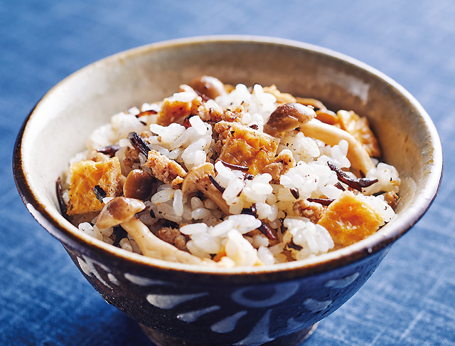 (1)しめじはほぐし、白ねぎはみじん切りにする。いなりは小さく切る。(2)フライパンにミンチとAを入れて炒める。(1)、ひじきを加えて炒め合わせる。(3)ボウルにごはんを入れ、(2)を加えて混ぜる。