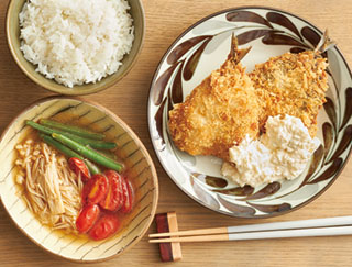 おまかせ献立(3人分)あじフライ、生姜の香る野菜の煮びたし