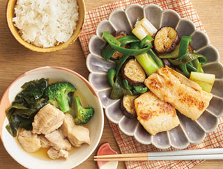 おまかせ献立(2人分)骨取りかれいのみそ漬け焼き、鶏とブロッコリーの和出汁煮込み