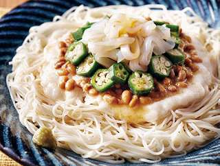 材料:まぐろ刺身切落し、オクラ、刻みのり