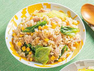 材料:ツナ缶、コーン缶、レタス、温かいご飯、マヨネーズ