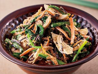 材料:厚揚げ、ひじきドライパック、絹さや、梅干し