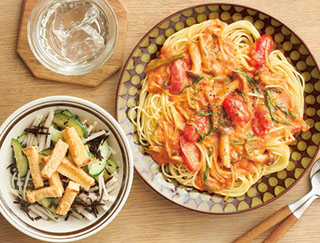 おまかせ献立(3人分)瓦焼風ぶっかけそば、さつまいもの甘煮