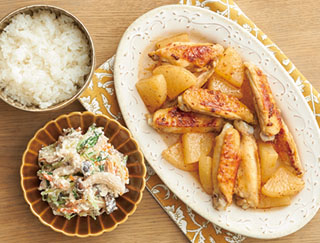 おまかせ献立(3人分)イイダコと大根の煮物、ウインナーとたまねぎのマヨペッパー