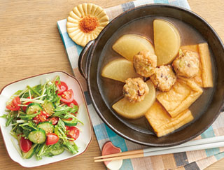 材料:イイダコ、大根、オクラ、絹厚あげ、塩