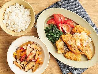 おまかせ献立(3人分)たっぷりおろしのほっけフライ、ごぼうのマヨきんぴら