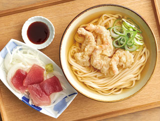 おまかせ献立(3人分)えび天うどん、まぐろの造り