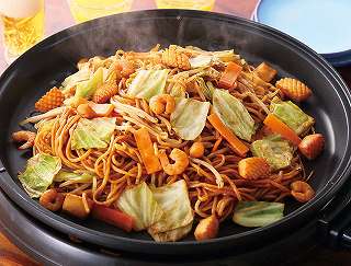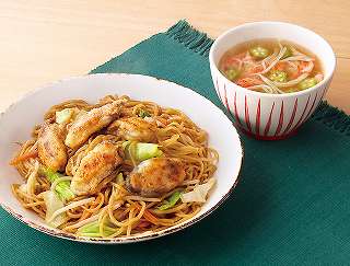 大きいえび入り! 焼そば、ガーリック香る鶏だしスープ