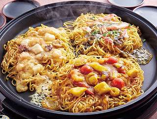 海鮮ソースかた焼そば、秋色ビーンズサラダ
