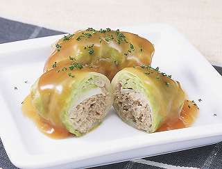 材料:キャベツ、玉ねぎ、パン粉、水、合挽ミンチ、卵、塩、こしょう、片栗粉、パセリ