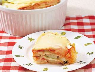 材料:キャベツ、塩・胡椒、じゃがいも、ロースハム、とろけるスライスチーズ、トマトピューレ